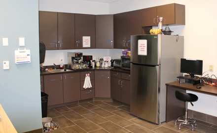 - Free coffee, microwave, and refrigerator